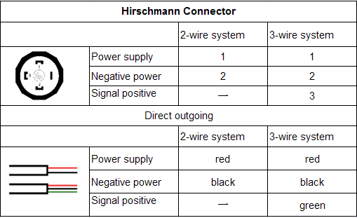 | Electrical interface: | Hirschmann connector, aerial plug, direct outlet |